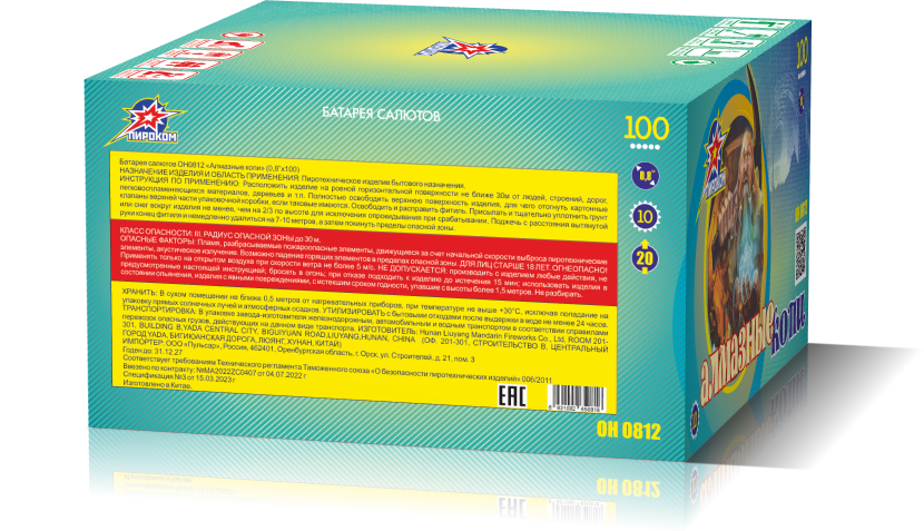 «Алмазные копи» — это не просто фейерверк, это настоящее путешествие в глубины алмазной шахты. Представьте себе, что вы спускаетесь в тёмную шахту, где мерцают драгоценные камни. Вы слышите, как под ногами скрипит песок, а вокруг вас сверкают алмазы всех цветов радуги. И вдруг, словно по волшебству, начинается невероятное шоу — фейерверк «Алмазные копи». У этого фейерверка целых 100 залпов, которые подарят невероятные впечатления всем гостям вашего праздника!