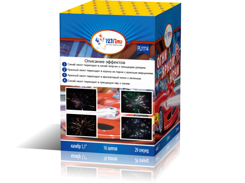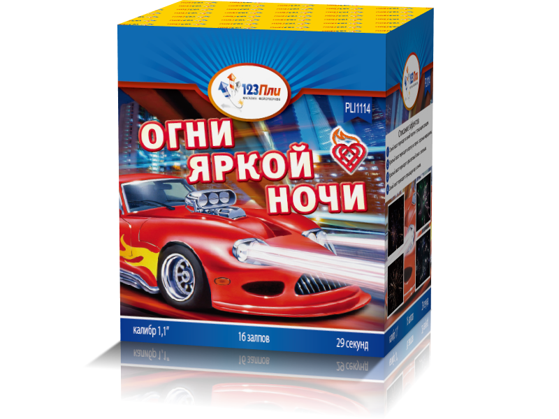 "Огни Яркой Ночи" - это фейерверк, который напоминает захватывающее приключение в огнях ночного города. Как езда на элегантной машине, каждый залп этого бюджетного фейерверка погружает в волшебный мир оттенков и света.