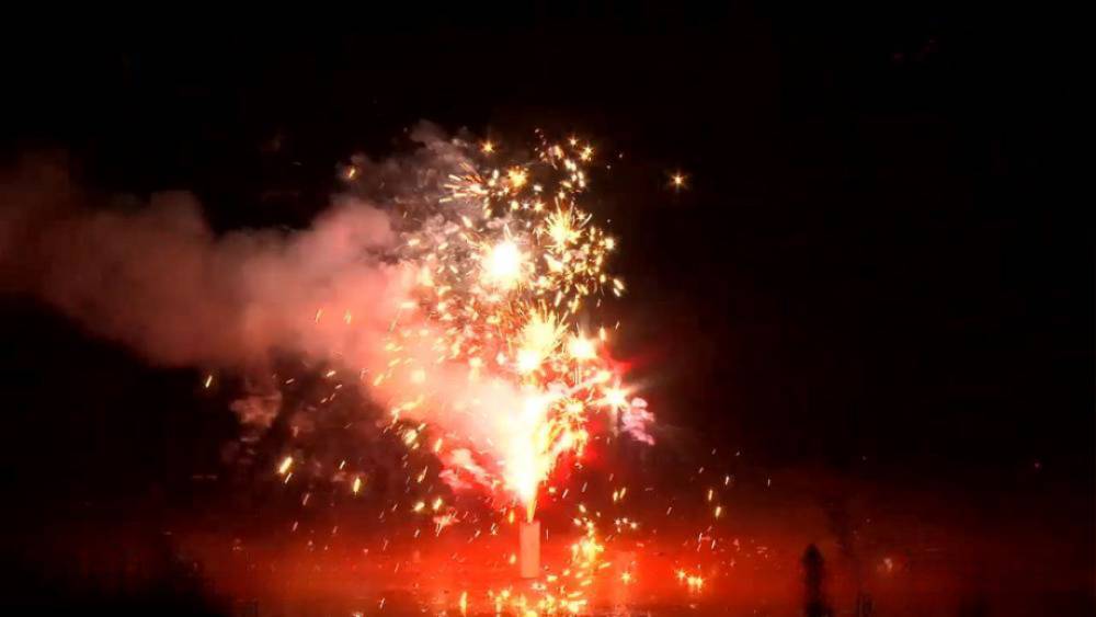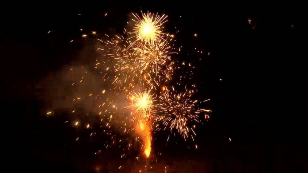 3. Поток оранжевых огней с россыпью шаров с треском.